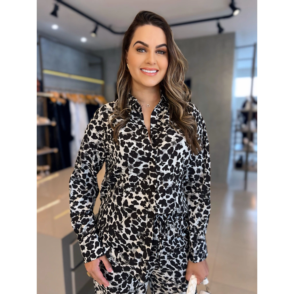 Conquiste todos os olhares com esse conjunto em animal print composto por camisa de mangas longas e calça pantalona de caimento fluido. O tecido leve garante movimento e frescor, enquanto a estampa marcante entrega estilo e atitude. Versátil e elegante, funciona tão bem em eventos e jantares quanto no ambiente de trabalho — use as peças juntas ou separadas para multiplicar looks.